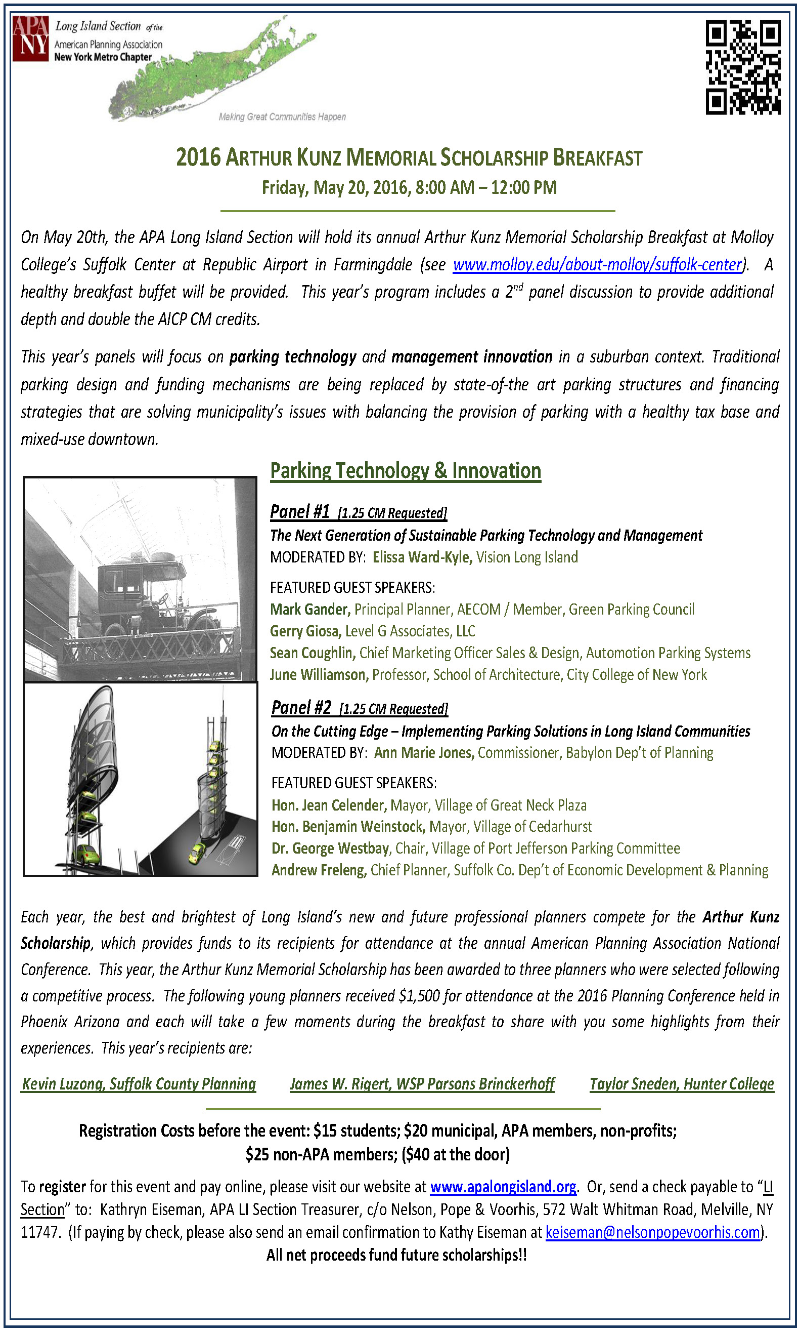 To register and/or sponsor this event (via PayPal), please see below; or, send a check payable to APA Long Island Section and mail to Kathryn Eiseman, APA LI Section Treasurer, c/o Nelson, Pope & Voorhis, LLC, 572 Walt Whitman Road, Melville, NY 11747 (If sending a check, please also send an email confirmation to keiseman@nelsonpopevoorhis.com)
