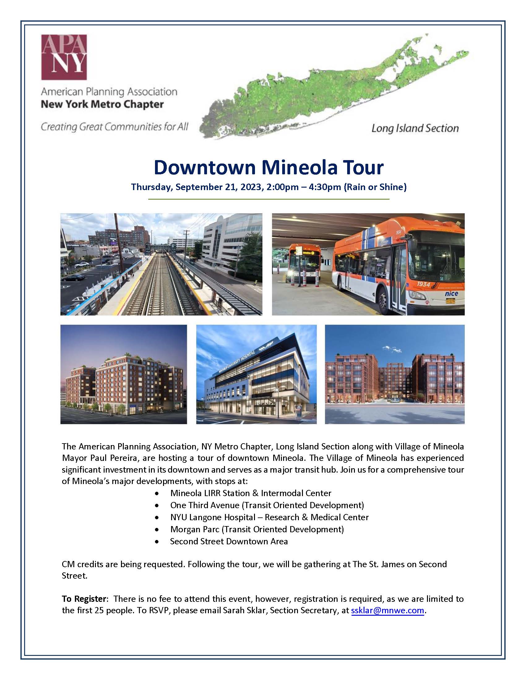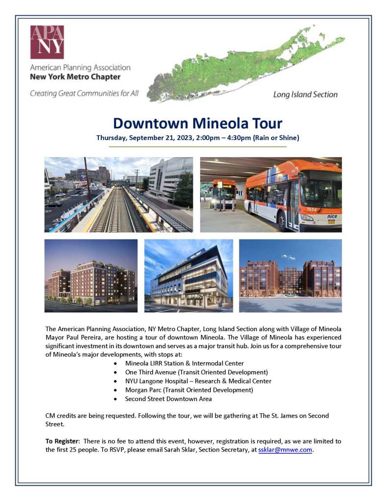 The program is now available for the Downtown Mineola Walking Tour on Thursday, September 21st (please see the flyer below). Special thank you to David Viana for coordinating this event and to Mayor Paul Pereira for hosting the tour!