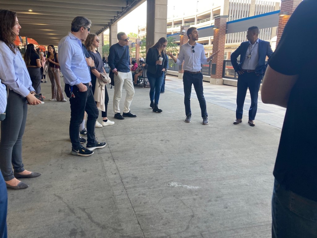 On Thursday, September 21st, 2023, David Viana along with the Village of Mineola Mayor Paul Pereira hosted a tour of downtown Mineola. Representatives from the MTA, NICE Bus, NYU Langone Research & Academic Center and Lalezarian Properties were also in attendance and spoke at the various stops along the tour. The tour highlighted how growth and development throughout the Village over the last decade have been integral to the successful revitalization of Mineola’s downtown. The tour began at the recently completed Mineola Long Island Rail Road Station, which serves as a major transportation hub for all of Nassau County and is a great complement to the ongoing downtown revitalization of Mineola.