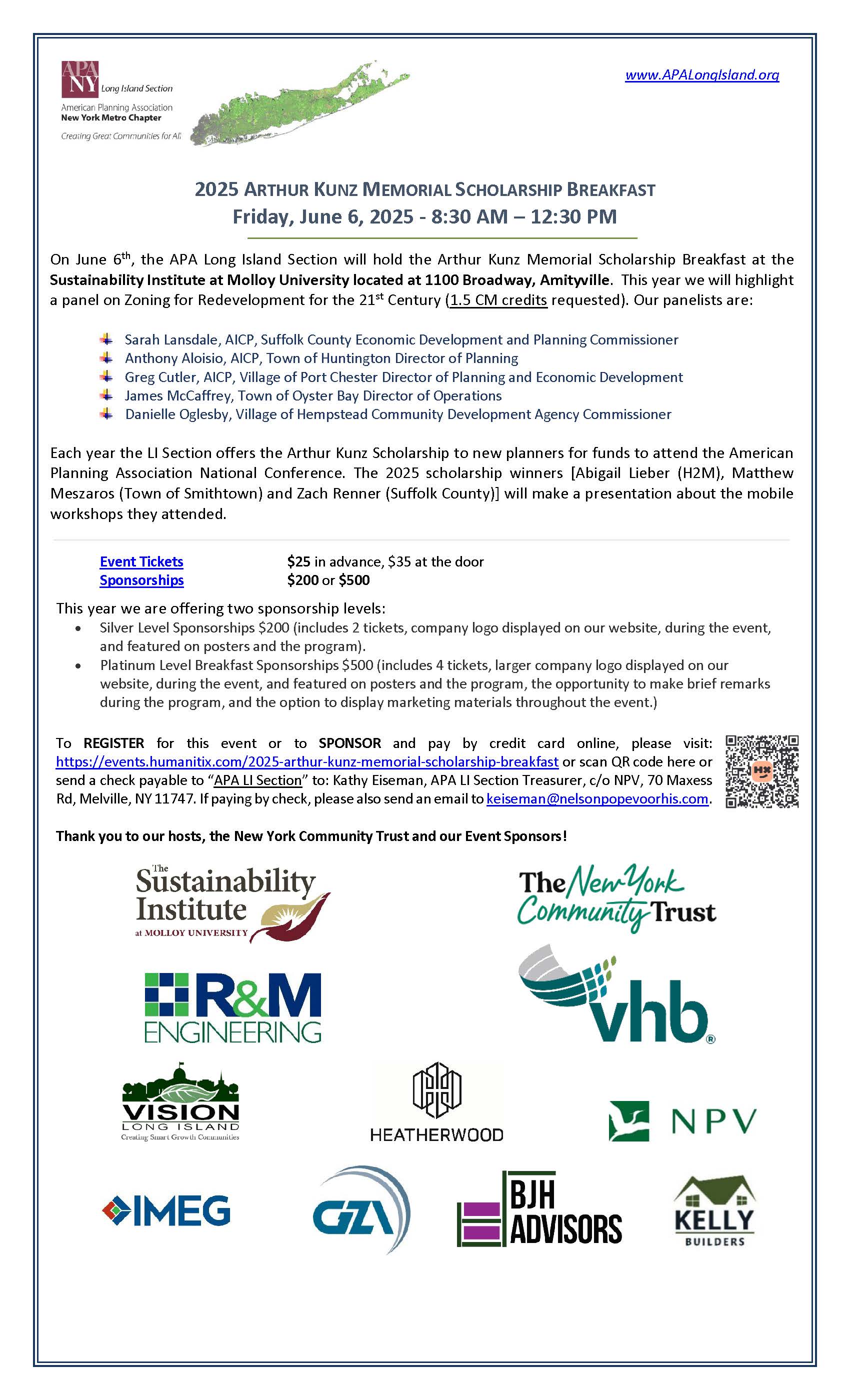 Please join us on June 6th at the Sustainability Institute at Molloy University for our annual Arthur Kunz Memorial Scholarship Breakfast!